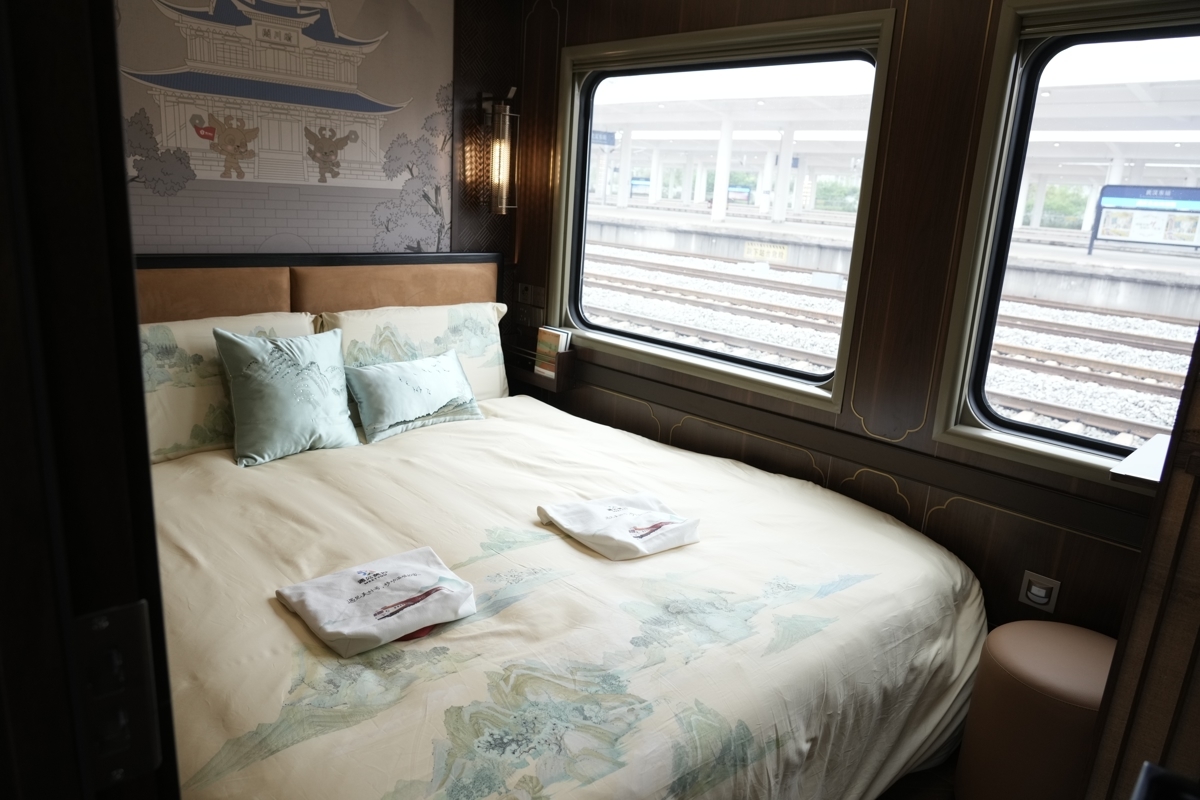 你对铁路旅游专列的印象还停留在绿皮车、高低床、拥挤的车厢?武铁刚刚上线的首列舒适型旅游专列,一定会让你眼前一亮。4月10日上午,极目新闻记者在武汉东站登上Y576次旅游专列看到,大床房、双床房、棋牌室、K歌房……硬件设施洋气又大气。
