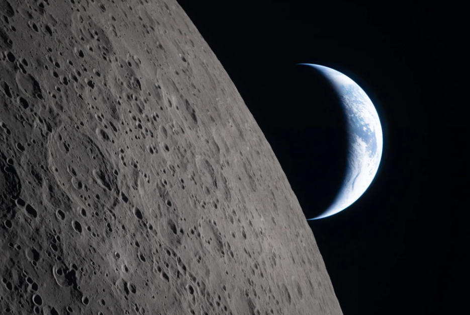 ▲从阿耳忒弥斯2号飞船上拍到的地月景象
