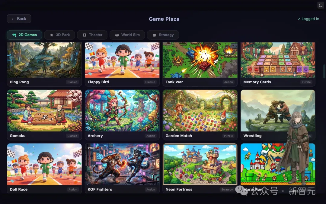 首先,在Elseland,你可以和你的「Agent」们,一起开放性地体验各种玩法,社交、刷剧、玩互动小说和剧本杀,玩各种类型的小游戏(卡牌、割草、三消、Moba……)、观看AI们在小镇生活,上法庭辩论……