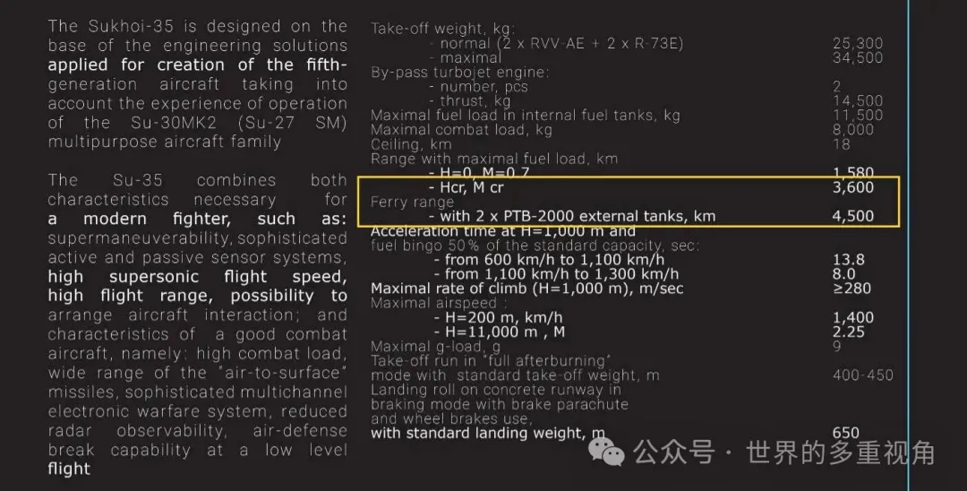 苏-35S有11.5吨内油,没有副油箱带来的阻力,转场航程却只有3600公里。