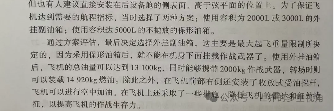 在这之前,只有苏-27M(也就是三翼面的老苏-35)设计了垂尾油箱,其内油数量达到了10.4吨。