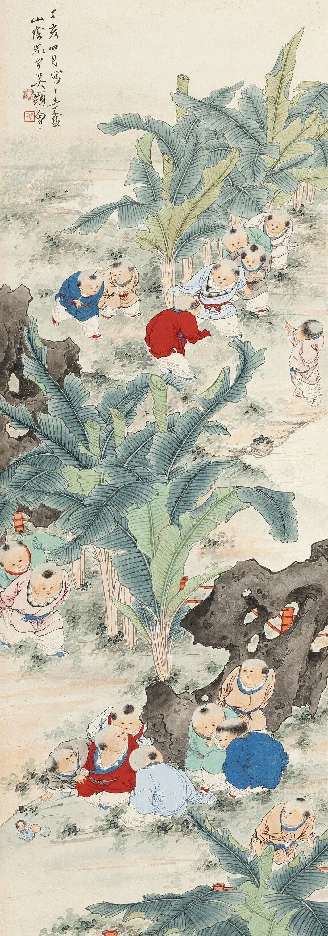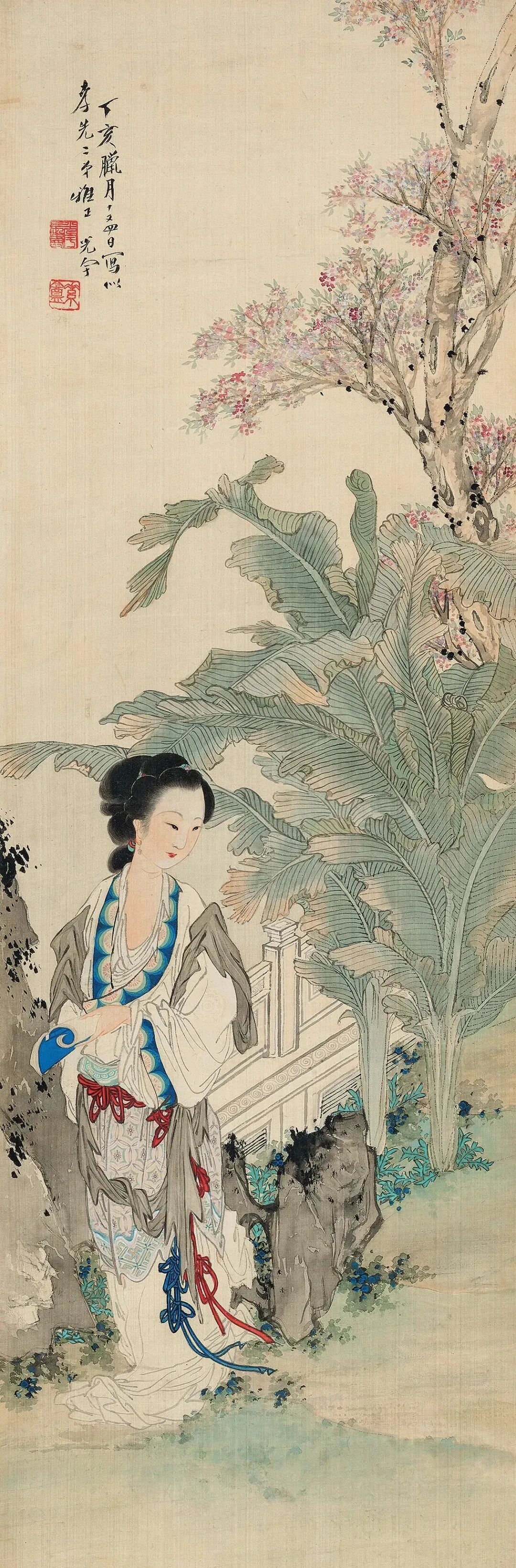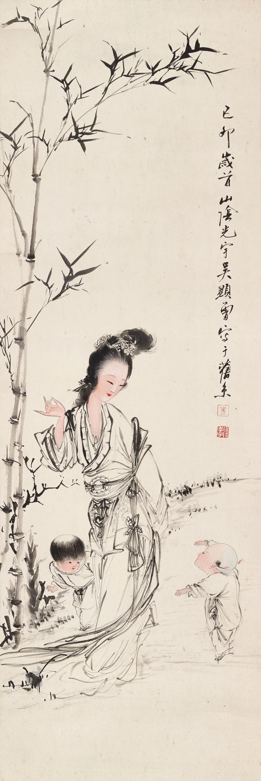 他画人物,那叫一个“有戏”。甭管是古装仕女,还是市井小民,一个个都跟从生活里直接“抠”出来似的。仕女们眉眼低垂,嘴角带笑,手里拿着团扇,轻轻一摇,仿佛能摇出满院的花香。市井小民呢,有的蹲在墙根儿晒太阳,有的挑着担子吆喝,脸上的皱纹里都藏着生活的酸甜苦辣。这哪是画啊,分明就是生活本身,热气腾腾,让人看了就心里暖乎乎的。