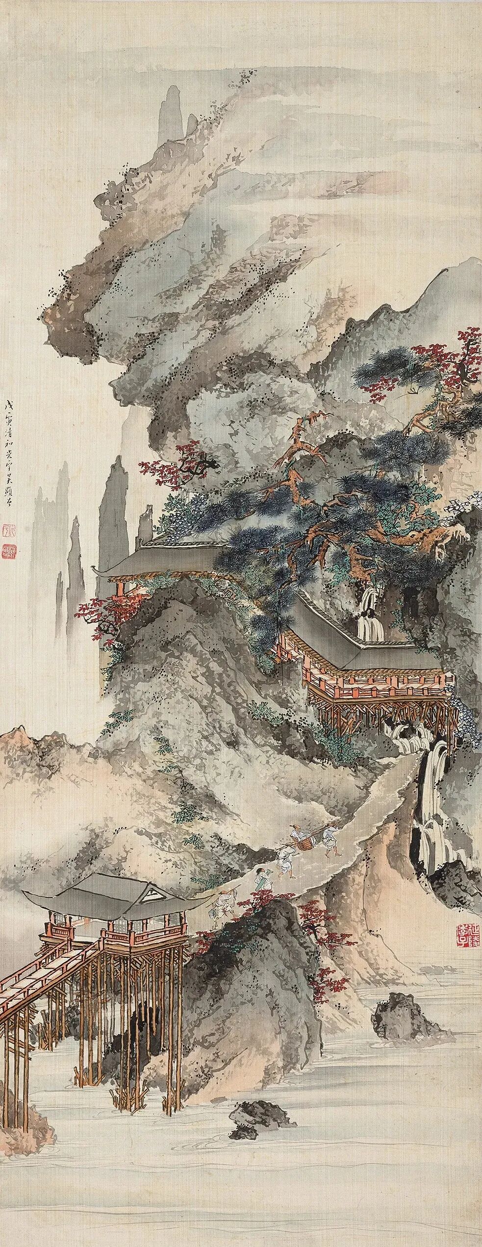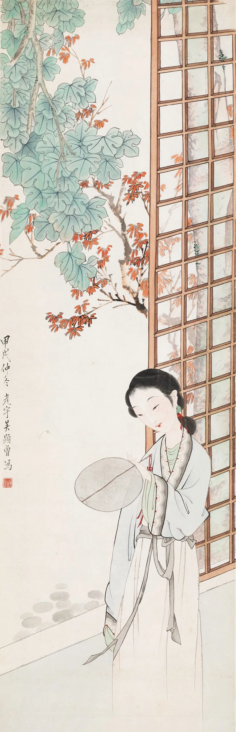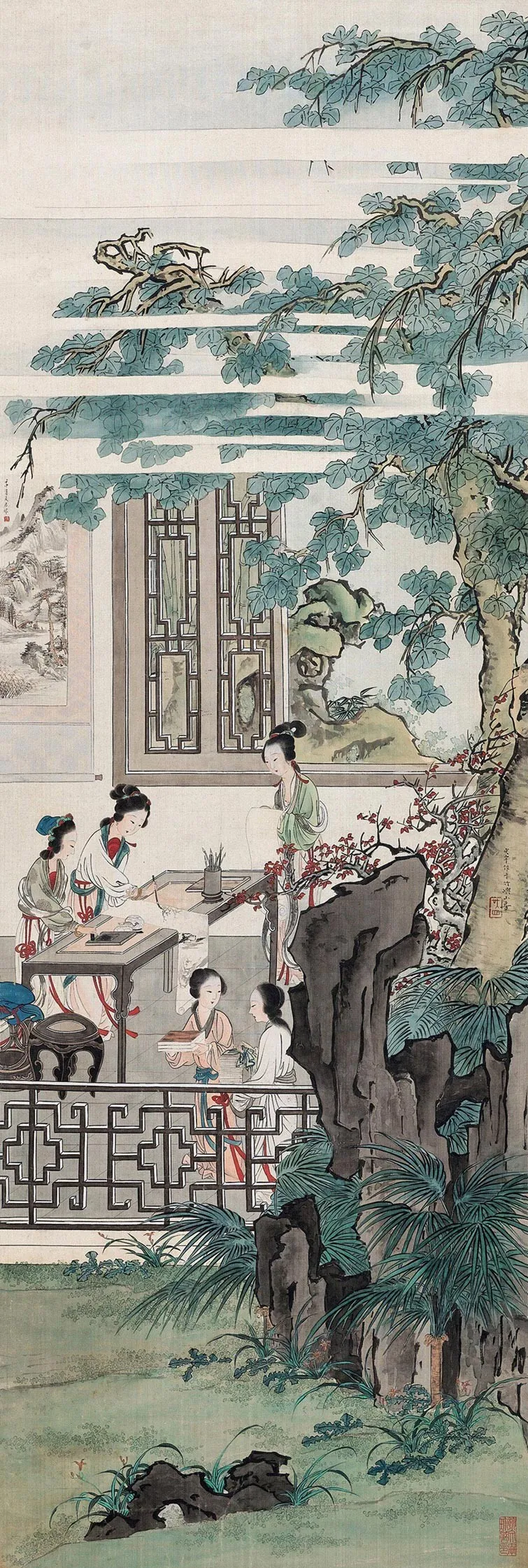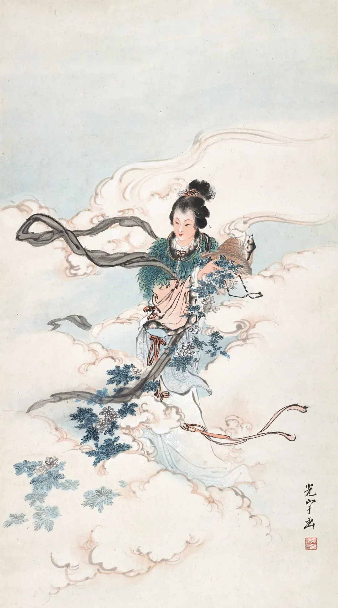 他画人物,那叫一个“有戏”。甭管是古装仕女,还是市井小民,一个个都跟从生活里直接“抠”出来似的。仕女们眉眼低垂,嘴角带笑,手里拿着团扇,轻轻一摇,仿佛能摇出满院的花香。市井小民呢,有的蹲在墙根儿晒太阳,有的挑着担子吆喝,脸上的皱纹里都藏着生活的酸甜苦辣。这哪是画啊,分明就是生活本身,热气腾腾,让人看了就心里暖乎乎的。