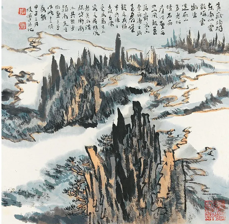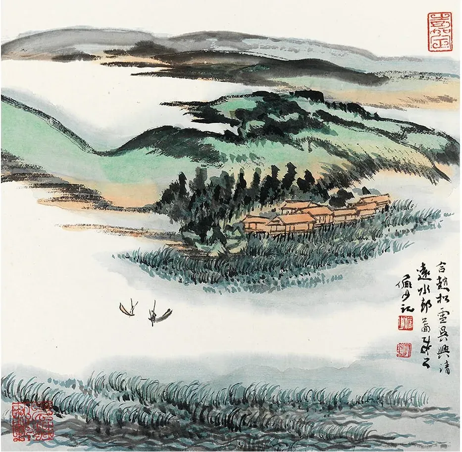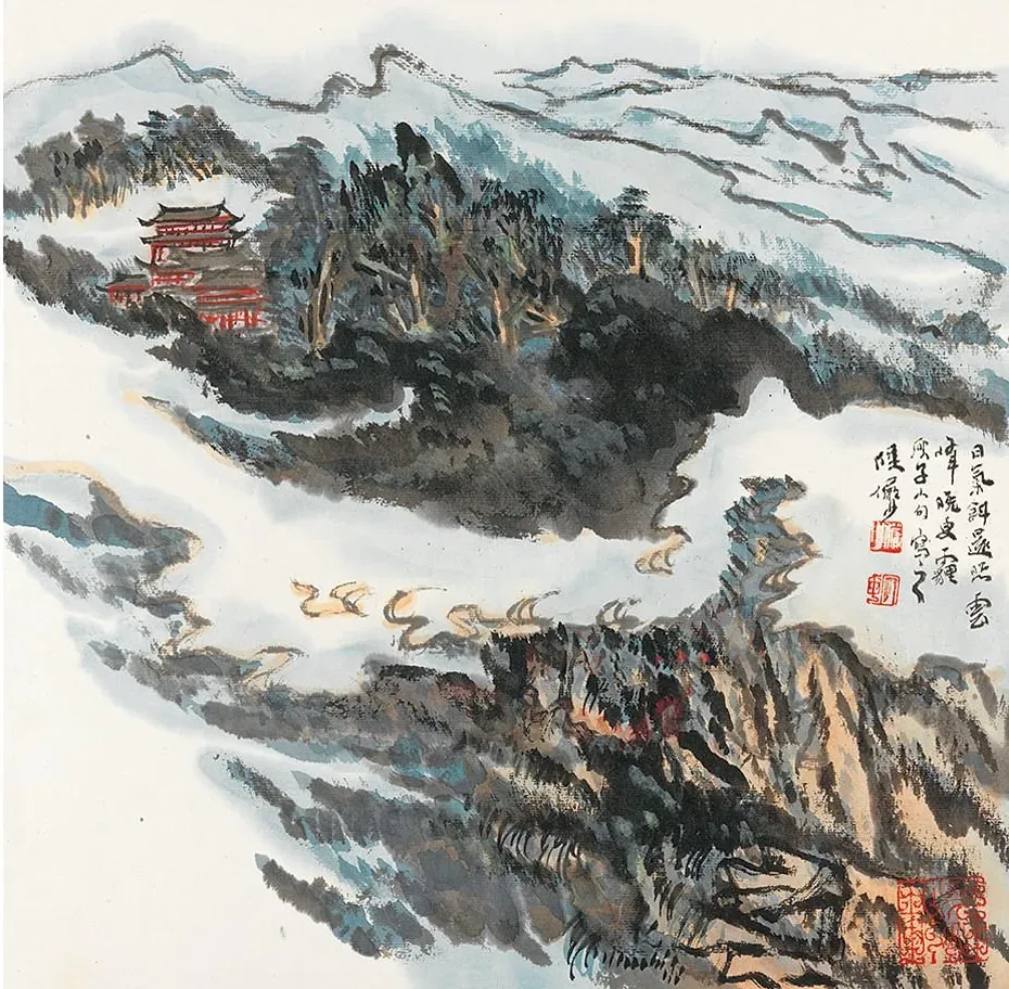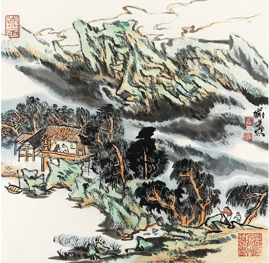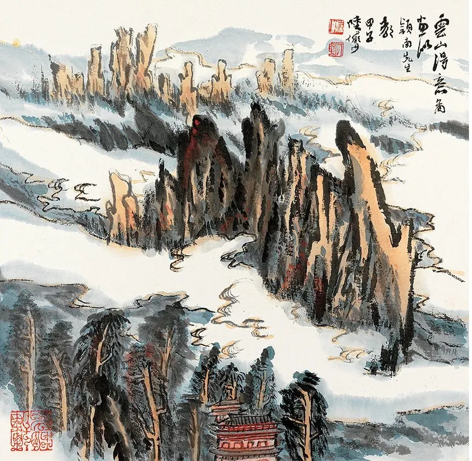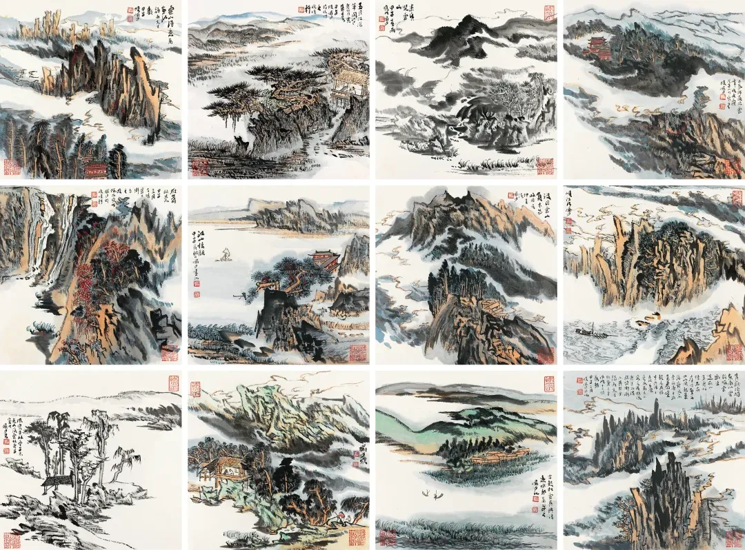 陆俨少这老先生,画起山水来那叫一个带劲!《云山得意图册》十二开,就像十二首用笔墨写成的山水狂想曲,每一首都让人听得如痴如醉。先说这“云山得意图”,老先生一出手,云雾缭绕的山峦就像活了一样,仿佛能听到山风在耳边呼呼地吹,云雾在眼前飘飘地绕。