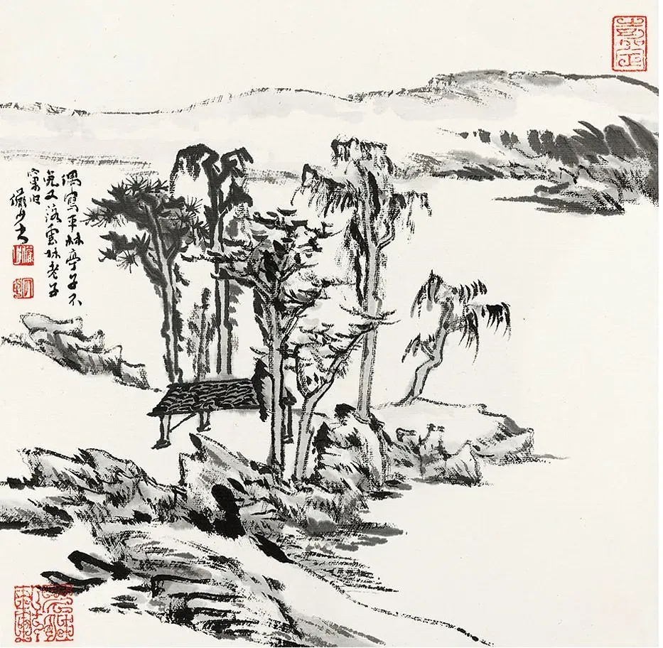 勾云法用得那叫一个溜,云团就像流泉一样有动感。画水也是一绝,长线条描水勾云,水纹的万般形态都被他刻画得入木三分。这《云山得意图册》,就是老先生用笔尖在纸上弹奏的一曲山水狂想曲。每一幅画都是一个小世界,十二幅画连起来,就是一个完整的大自然。看着这画,我仿佛也跟着老先生一起游历了名山大川,感受了大自然的壮美与神奇。这哪是看画啊,简直就是一场说走就走的旅行!