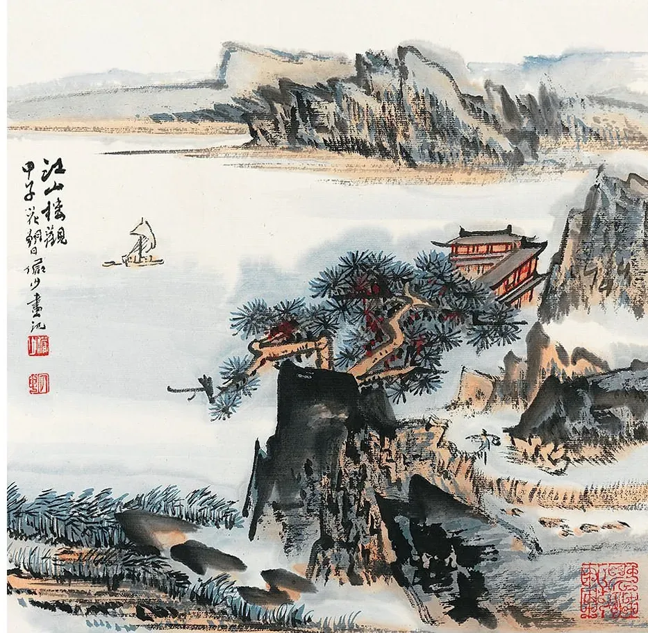 (一)云山得意图。画似颖南先生教,甲子陆俨少