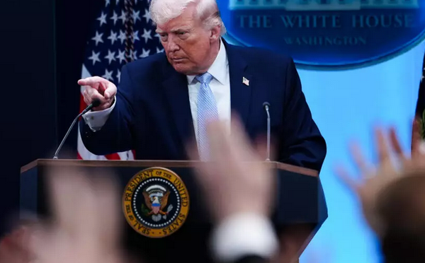 2026年4月6日星期一,美国总统唐纳德·特朗普在华盛顿白宫的詹姆斯·布雷迪新闻简报室接受记者采访。 AP - Julia Demaree Nikhinson
