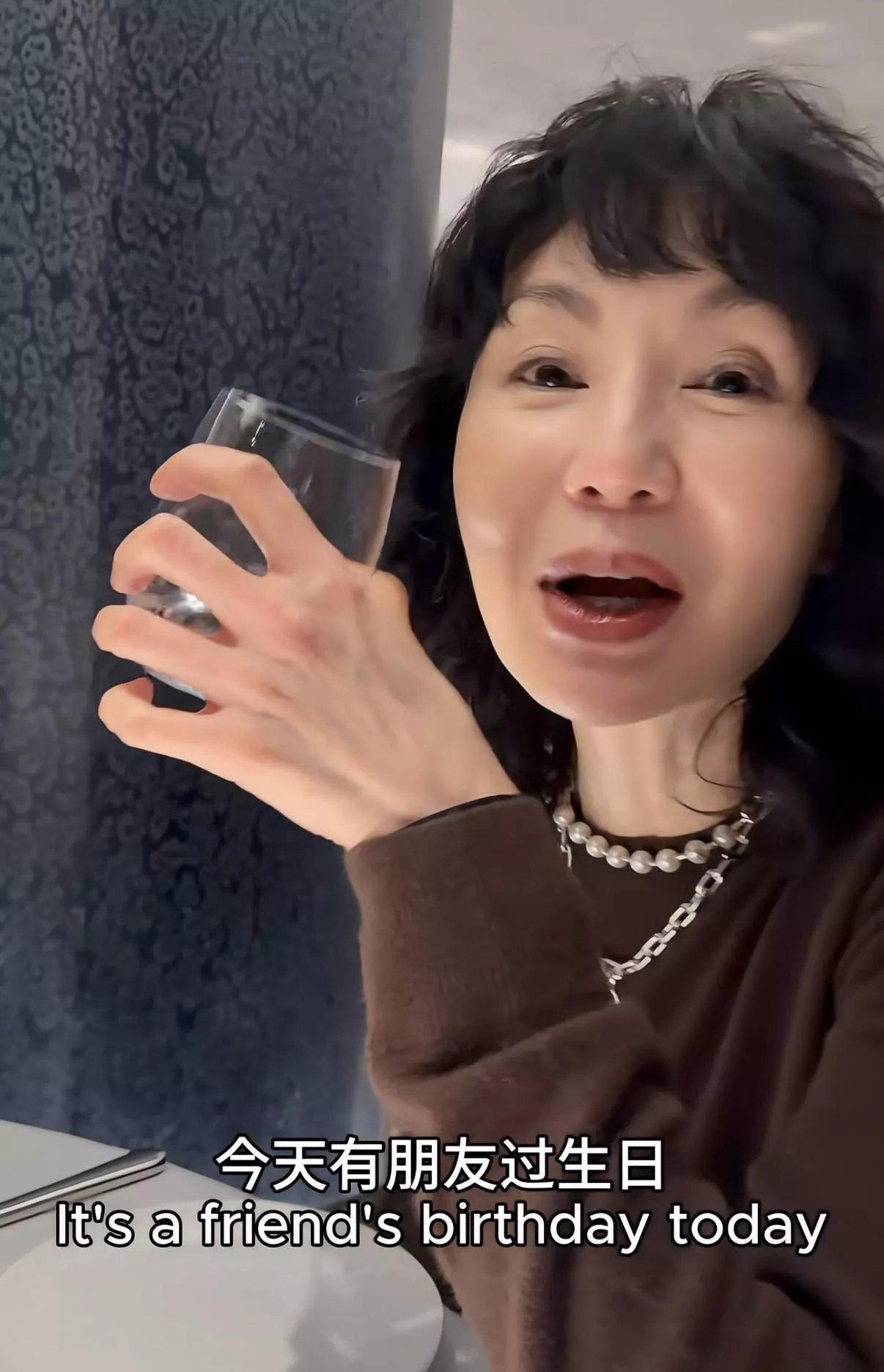 张曼玉为好友庆生:戴珍珠项链好贵气小疯说时尚