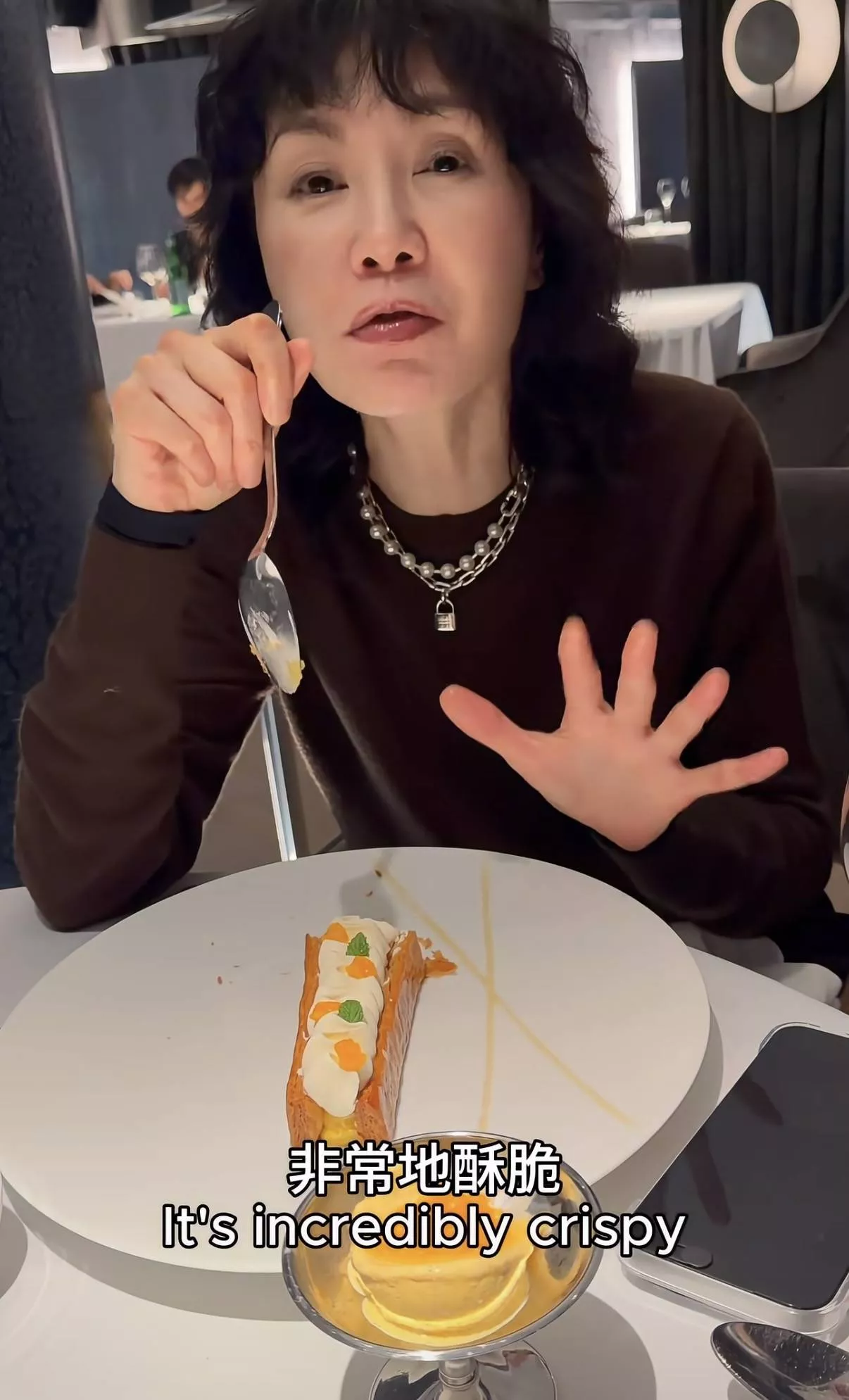 最后张曼玉还吃了一份甜品,没想到张曼玉也喜欢吃甜品,没有因为属于高热量的事物而拒绝。