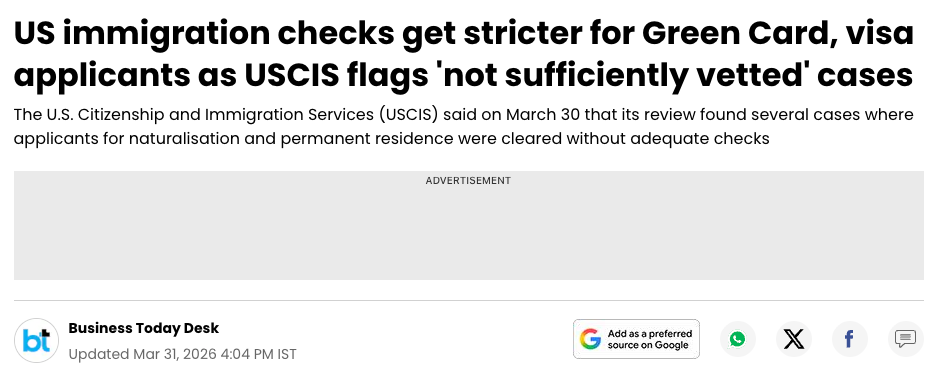 该机构补充称,此举旨在确保“只有符合资格且通过审查的个人才能获得移民福利”,标志着美国移民体系正持续转向更加严格的执法方向。