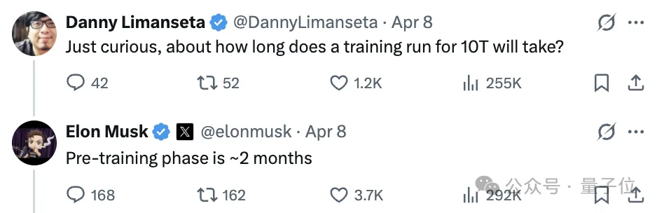 比如有人问“训练一个10T模型,大概要花多久?”,马斯克说预训练阶段大约需要2个月。