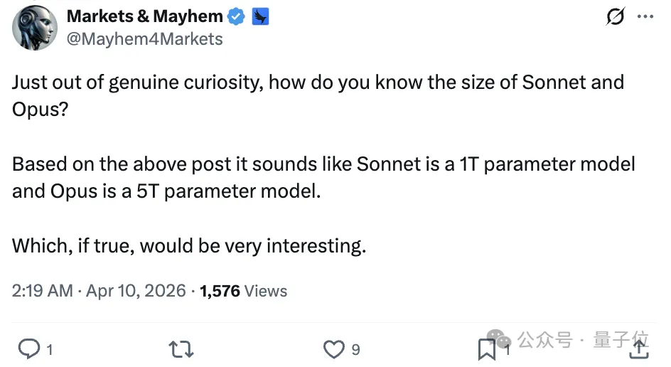 网友一眼瞄到显眼信息,这不就是说Sonnet是1T,Opus是5T。