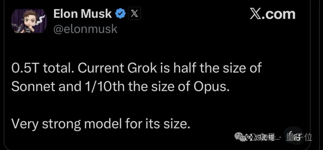 总参数量就是0.5T(5000亿)。现在的Grok,参数量是Sonnet的一半、Opus的十分之一。以它的规模来说,是非常强的模型。