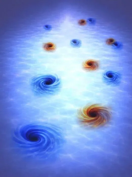 艺术概念图:光强消失的光学奇点与旋转的蓝色和橙色光学涡旋。图片来源:Technion-Israel Institute of Technology