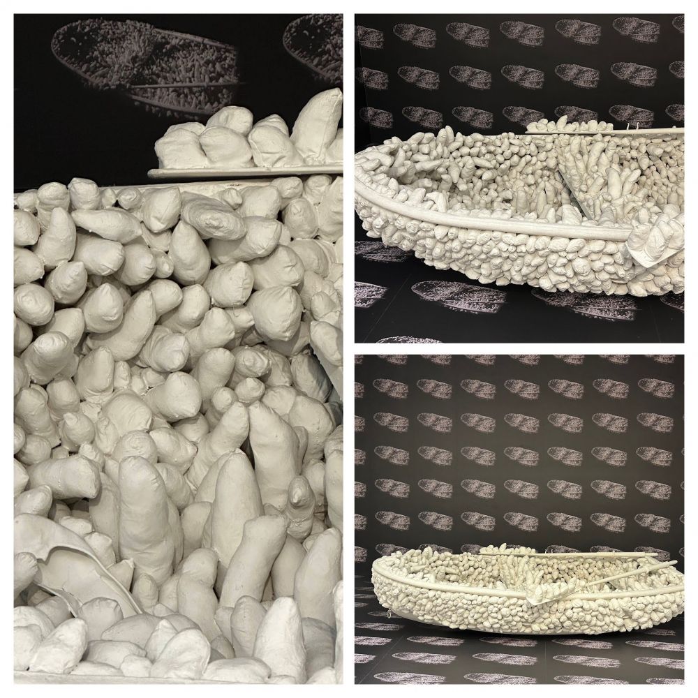 这张名为“一千条船的聚集”,全部用填充的软体,其中还有几只女人的鞋。我找了半天,只发现了一只鞋。