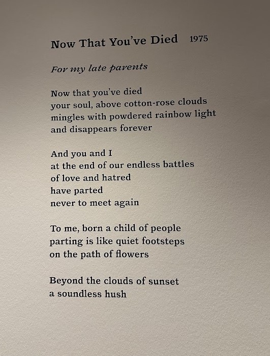 她开始写诗,朗读,进行文学创作,所有只为减轻心灵上的痛苦。 各种表诉失眠,忧郁的诗,尤其她在父母死后写下的这首,非常感动我。