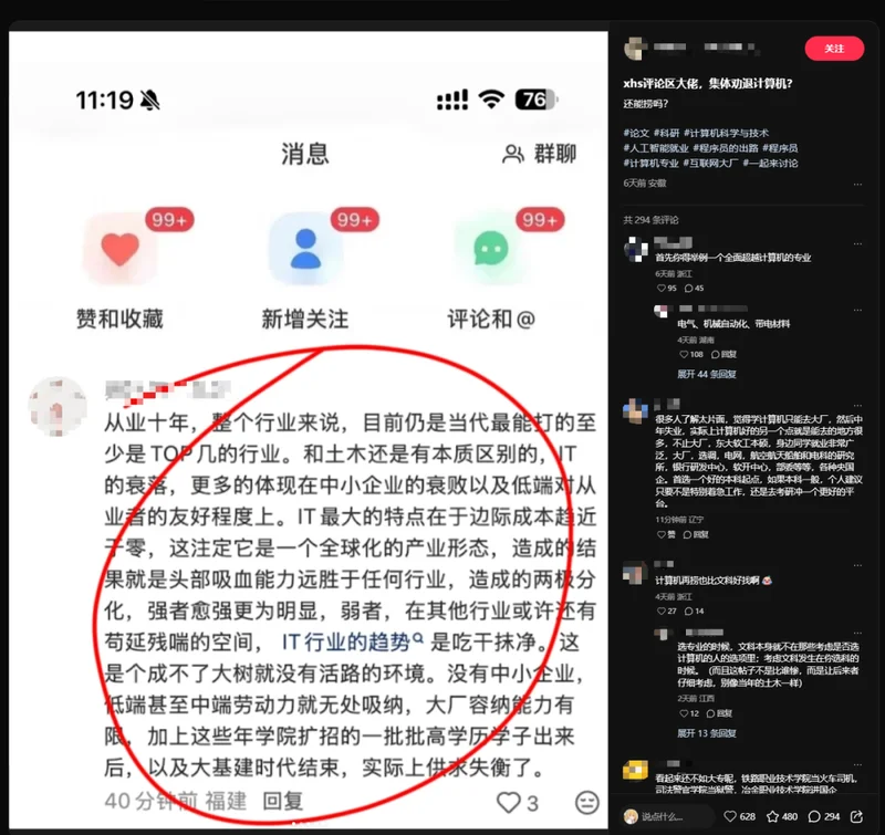 前两天,世超无意中刷到了一条帖子,一个分享计算机学习日常的网友,发现她的评论区,正在集体劝退计算机专业。