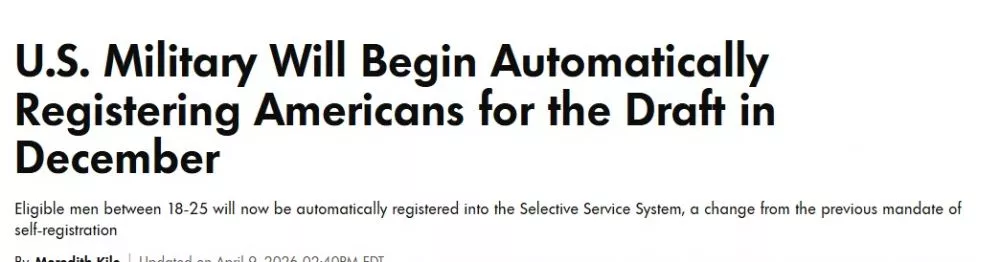 美国政府计划12月起实施“自动征兵登记”制度,18至25岁符合资格的男性,将自动被加入征兵资料库。在中东战火蔓延之际,不少美国民众担心,政府可能重启征兵,为大规模军事部署做准备。