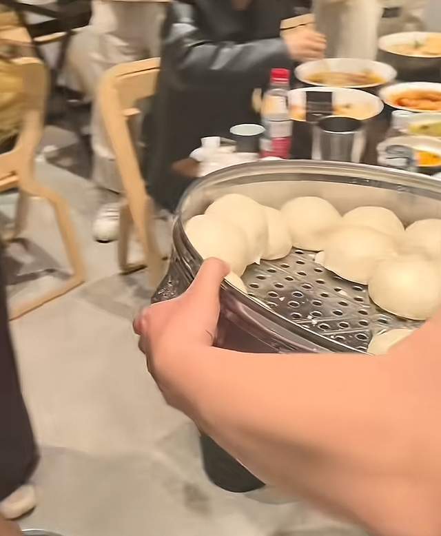 由于店内顾客非常多,所以提前准备的餐食早已售卖一空,为此,只能送馒头。有一位疑似顾客的网友,端着篦子开始发放馒头,这就证实了该网友的说法,的确是爆火。