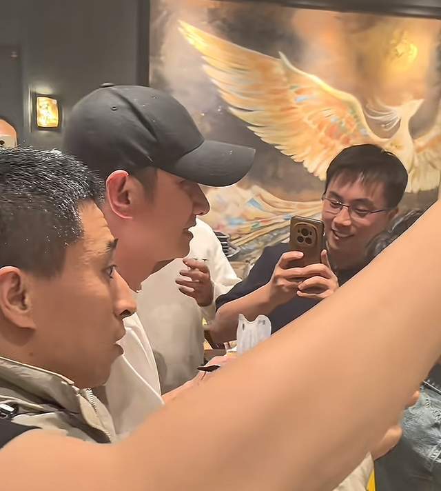 曝光的画面中,文章被一众顾客围在中间拍照,手里拿着口罩,像是刚刚来到饭店。细看其面部表情不难发现,他稍显紧张和不适,想来是没想到,他淡出电视圈那么多年,仍然备受欢迎。