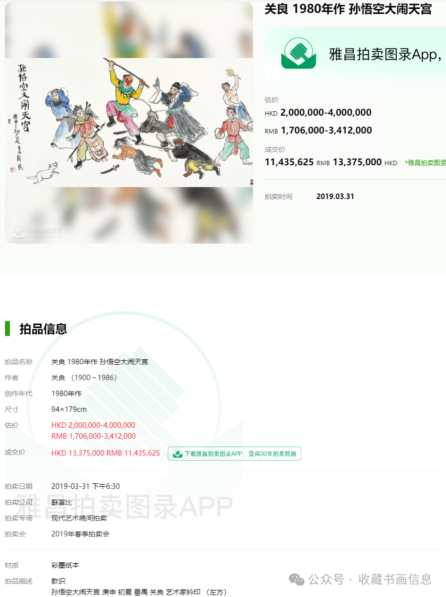 香港春拍,扎心一幕:关良大闹天宫跌没一千万收藏书画信息
