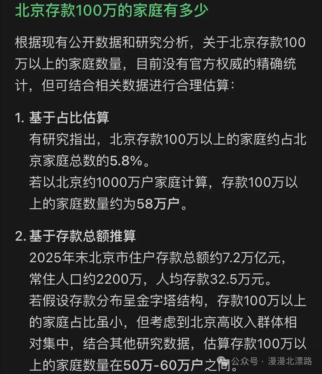 再说了,在北京的存款100万,等比于其他城市存款10万到20万之间。