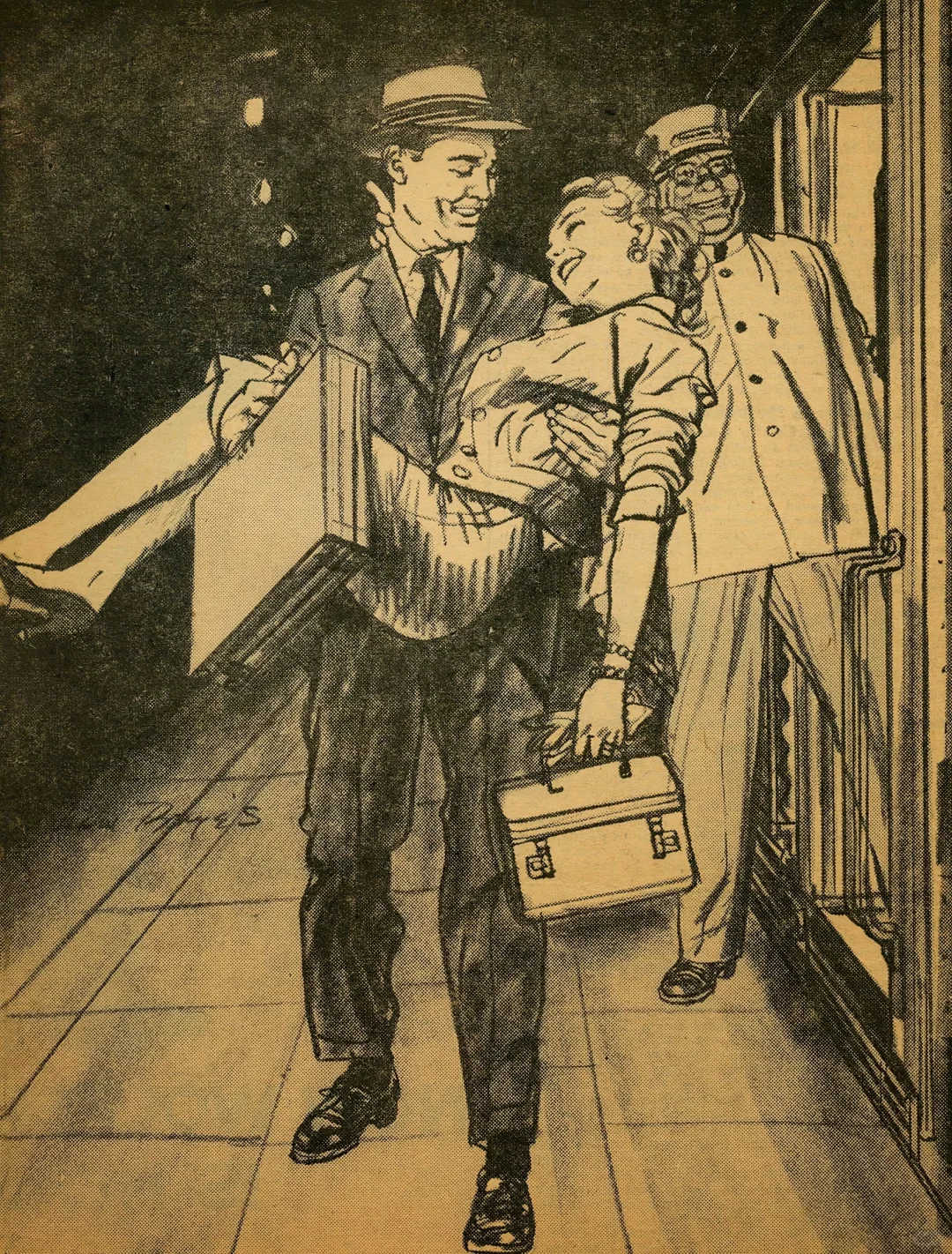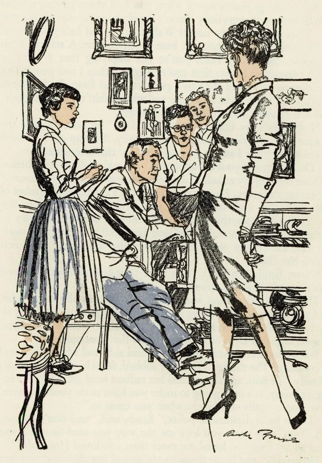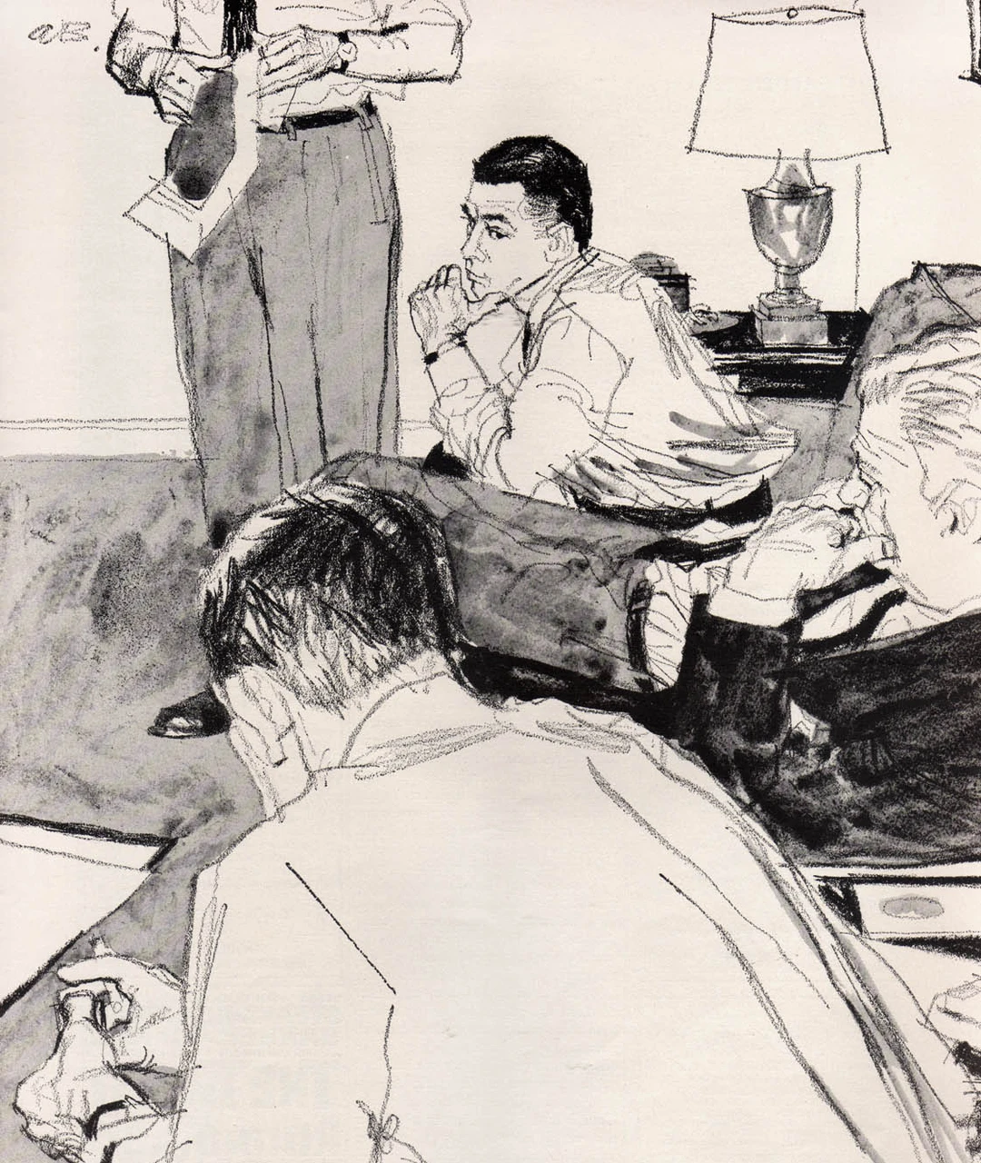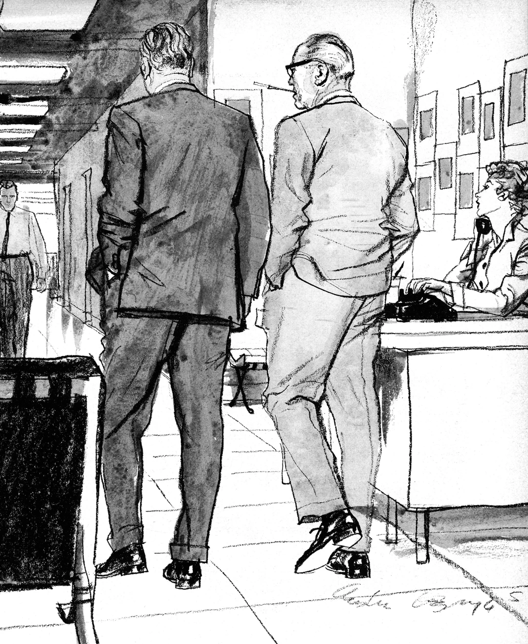 奥斯汀·布里格斯(Austin Briggs)的速写,给人最直接的感觉就是真实。 他不画那些摆好姿势的完美瞬间。 画里的人要么低头看表,要么侧身交谈,衣服领子可能都没来得及整理。 看着画,就会忍不住想: 他接下来要做什么?刚才发生了什么? 只留下最关键的动作和轮廓,其他都省略了。 他更在意那种“抓拍”的真实感。
