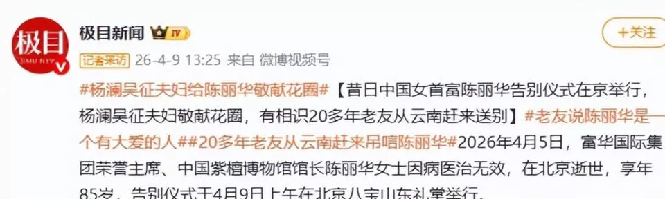 著名主持人白岩松也出现在人群中。 他的到场,被很多人看作是一种文化圈层的认可。 杨澜和吴征夫妇虽然人未到,但送来了花圈。现场最让人动容的,是一位专程从云南西双版纳赶来的贾女士。她与陈丽华相识二十多年,得知消息后立刻买机票飞来北京,就为了见最后一面,送完别,当天就要再飞回去。
