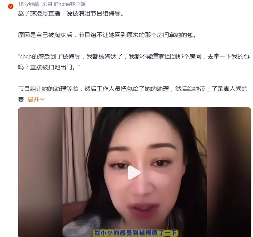 《浪姐7》一公舞台结束,实力不俗的赵子琪惨遭淘汰,全网热议。