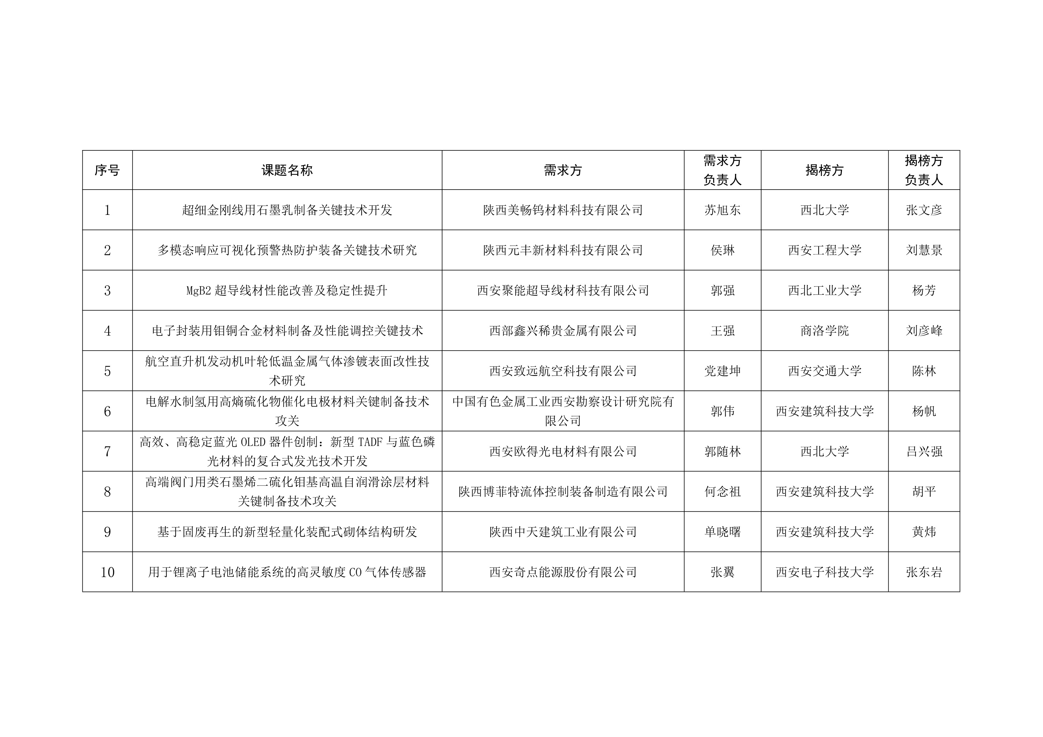 陕西省“揭榜挂帅”课题揭榜结果公示陕西省科学技术厅