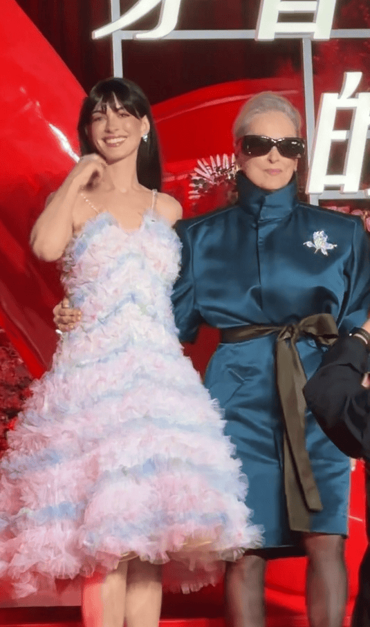 2026年4月10日,《穿普拉达的女王2》中国首映礼于在上海举行,主演安妮·海瑟薇、梅丽尔·斯特里普共同亮相,魅力十足。