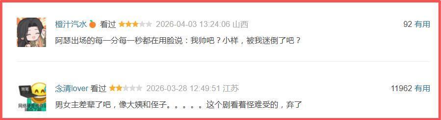行,赏你两集的机会,要是后续剧情不拉胯,咱就继续磕;可一旦男女主在造型上翻了车、颜值得不到大众认可,那吐槽声浪比海啸还猛。