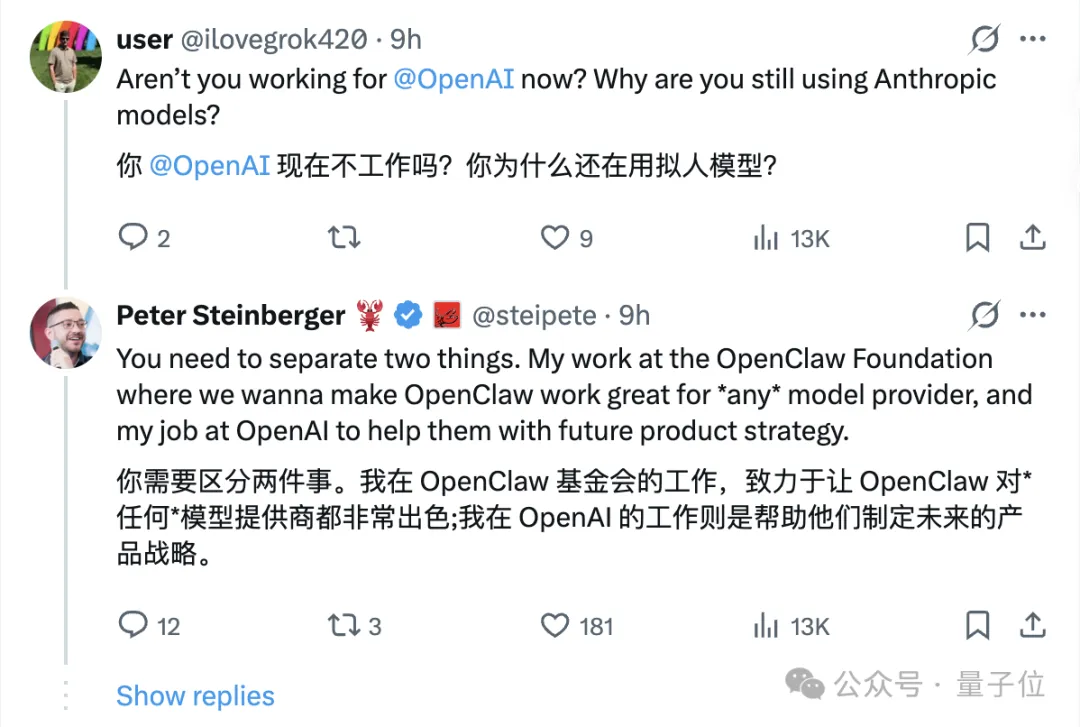 我在OpenClaw Foundation做的事情,是希望让OpenClaw能够很好地支持任何模型提供商。以及我在OpenAI的工作,是帮助他们制定未来的产品战略。