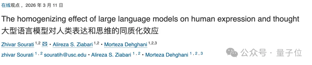 一篇来自南加州大学的论文指出,如果这种同质化趋势继续不受控制地发展下去,就有可能削弱人类的集体智慧和适应能力。