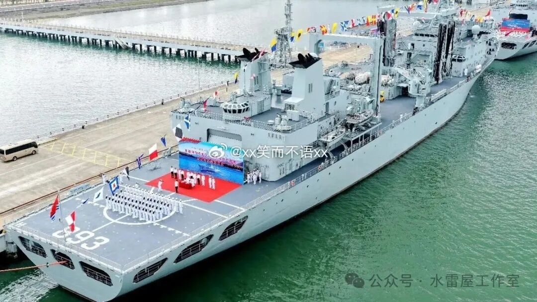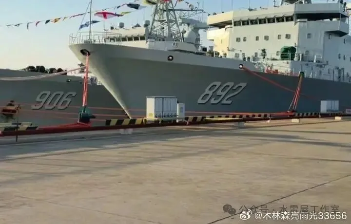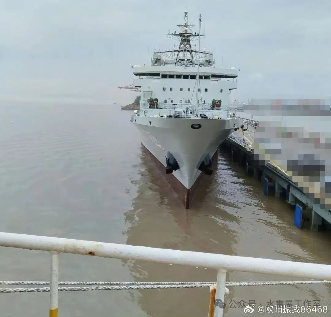 近日据网络社媒平台曝光,又有一艘新批次改进型903A综合补给舰刷号了(图源见水印)。这标志性的黄水,大家应该不难判断这艘新903A是给哪边的。