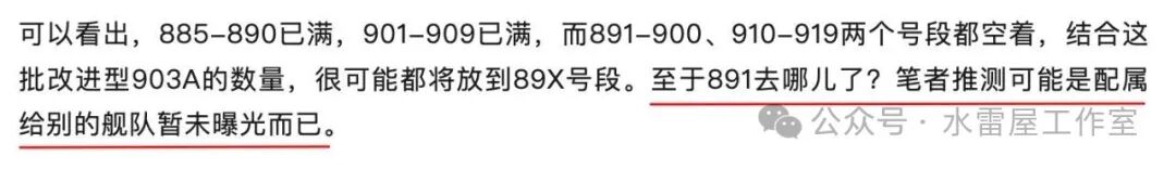 舷号方面,从前3艘舰也可以看出,这批新批次改进型903A很可能都将使用89X号段。