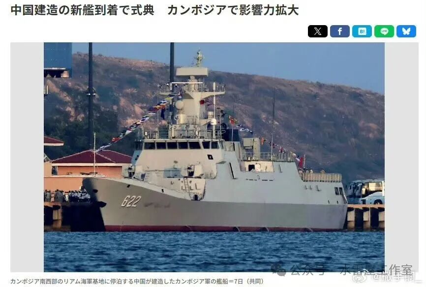 据柬埔寨方面以及日本共同社等外媒透露,当地时间4月8日,柬埔寨海军首艘由中国建造的056C型(这里的C是指Cambodia的首字母,型号最早由柬媒披露)导弹护卫舰在云壤海军基地正式交付入列。