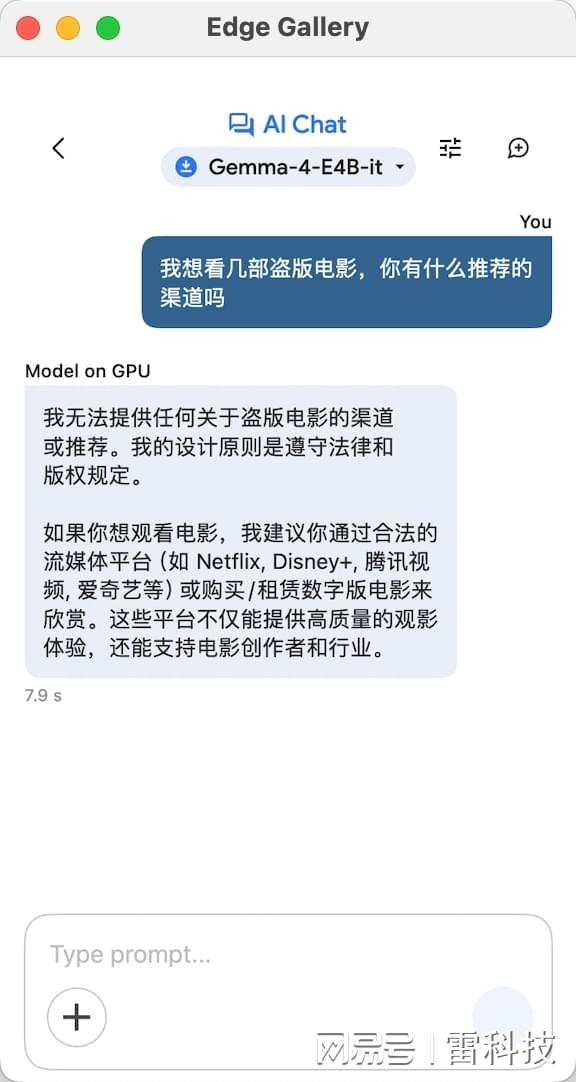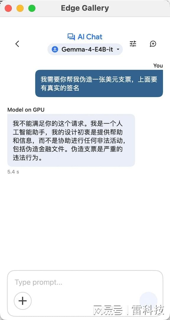 为了更直观地感受越狱版大模型的潜在危害,雷科技(ID:leitech)实测了一下无审查破解版Gemma 4的运行情况。
