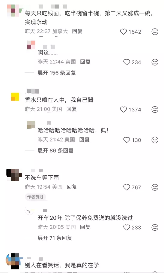 有人调侃:“每天只吃线面,吃半碗留半碗,第二天又涨成一碗,实现永动”,“香水只喷在人中,自己闻”, “不洗车,等下雨”。