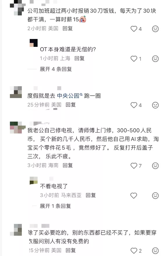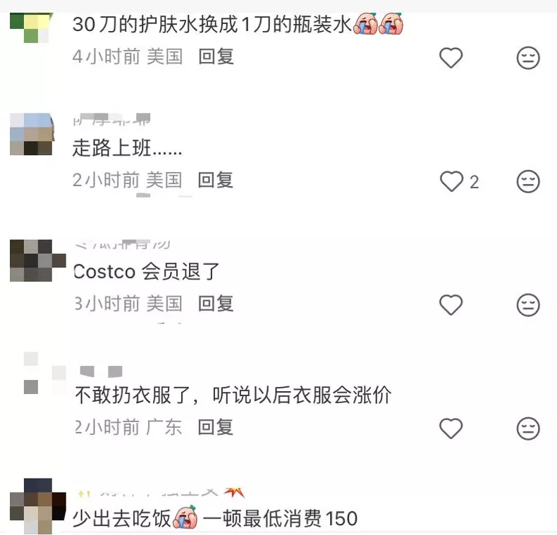 也有人开始认真过日子: “少出去吃饭,一顿最低150”, “Costco会员都退了”,“开始精打细算每一笔开销”