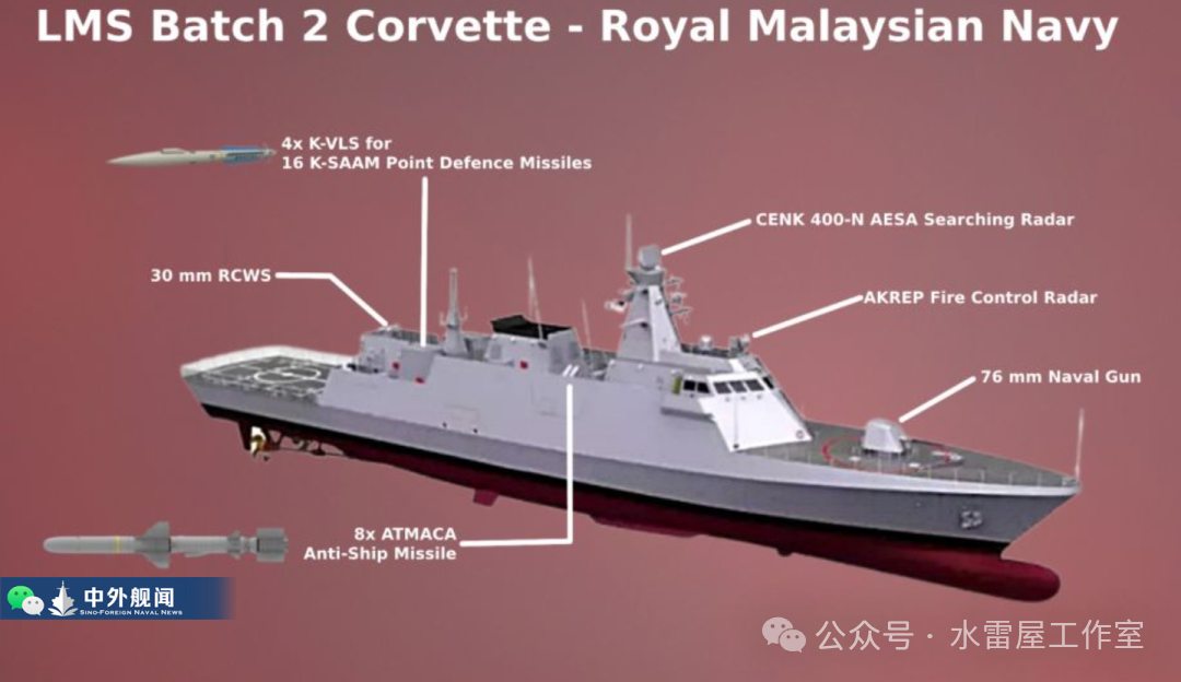 马来西亚采购土耳其的第二批次 “濒海任务舰” 较中国制造的第一批次排水量翻了三番,达到了 2400 吨,本质上是土耳其国产的 “岛” 级轻护卫舰改进版本,2024 年 12 月 5 日,首舰开工。
