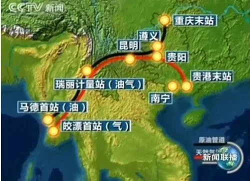 2013年5月30日,中缅油气管道全线贯通,部分海上进口原油和缅甸天然气资源将绕过马六甲海峡输送至国内。