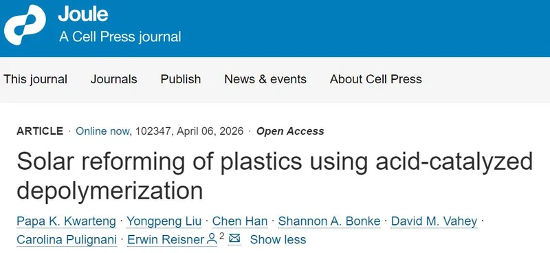 该方法由太阳能驱动,成本比现有化学方法低 1 个数量级,且酸液可重复利用。这种方法创建了一个新的循环经济系统“废酸分解废塑料”,有望成为塑料升级回收的补充方案。相关论文发表于 Joule。