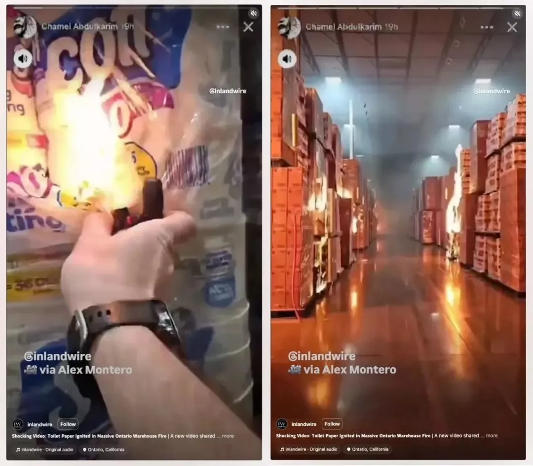 纵火调查人员目前正在重点审查一段在社交媒体上流传的视频。该视频似乎拍摄于仓库内部,显示一名男子用打火机点燃成箱的卫生纸,同时反复抱怨薪资不足以维持生活。