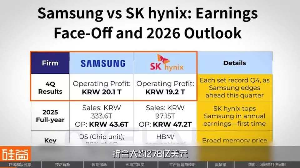 2026年1月底,韩国存储双雄三星电子和SK海力士同时公布了上一年第四季度财报。数字有多夸张呢?两家公司合计营业利润接近40万亿韩元,折合大概278亿美元,相当于每天净赚3亿美元。在这样创下历史的利润下,SK海力士的年终奖,人均达到64万元人民币,刷新公司历史纪录。