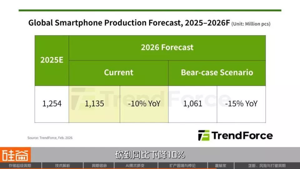手机市场最先遭殃,小米、OPPO出货预测下调超过20%,vivo下调近15%。TrendForce直接把2026年全球智能手机生产总数预测,砍到了同比下降10%。魅族宣布取消魅族22Air的上市计划,因为成本扛不住了。Nothing的CEO裴宇在社交媒体上感叹:小公司不得不寻找其他出路。