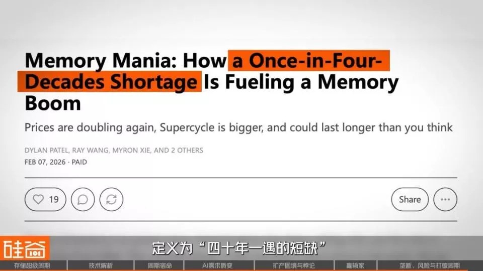 SemiAnalysis将这轮周期定义为“四十年一遇的短缺”。但更有价值的方向或许是:存储芯片行业正站在一个分岔路口,它要么像过去四十年一样,在价格峰值后滑入又一轮低谷;要么,在AI的结构性需求驱动下,真正打破周期宿命,成为一个持续增长的产业。