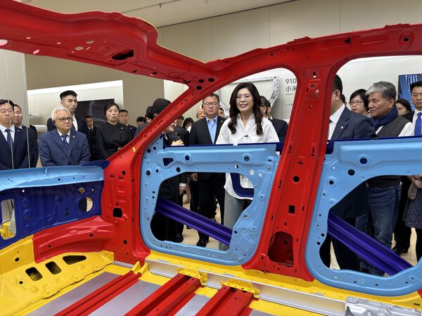 于小米汽车体验中心负责接待的是小米合伙人、总裁卢伟冰,陪同参访的还有中共中央台办副主任彭庆恩、北京市台办主任霍光峰等。参访过程中,郑丽文对于讲解员介绍的各类电动汽车技术,连连发出惊呼,在拿起小米汽车电池时,更惊讶“很轻耶,不是很重”。