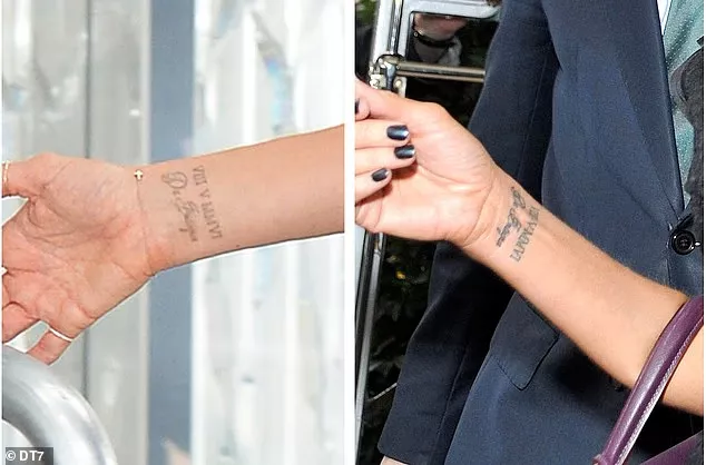 维多利亚的左手腕上曾纹有丈夫大卫姓名的首字母,以及用希伯来语写成的“永远在一起”字样。这是为了纪念两人结婚十周年而特意纹上的。