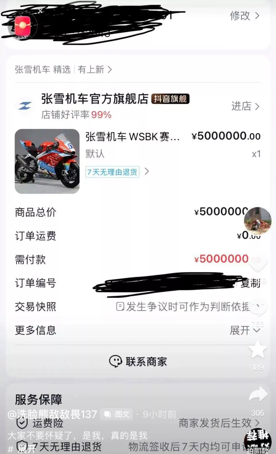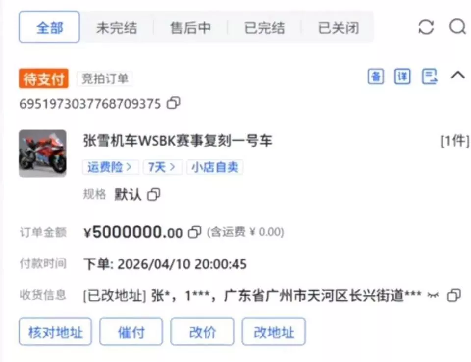 张雪复刻赛车500万拍出,得主:想付尾款却联系不上